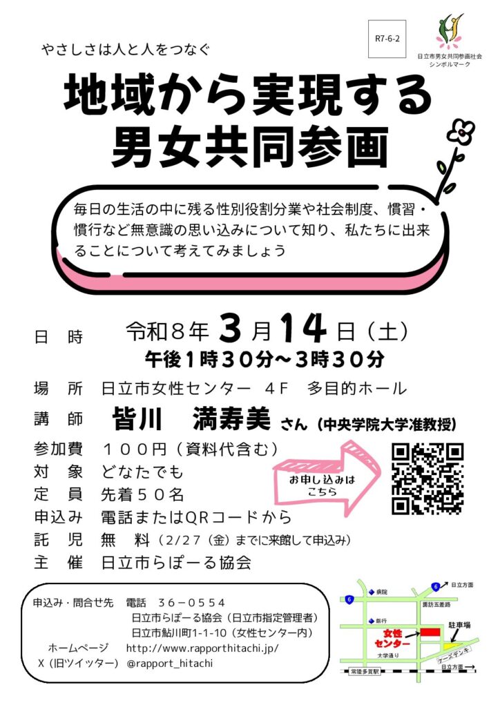 NEW! 男女共同参画セミナー「地域から実現する男女共同参画」の詳細が決定しました